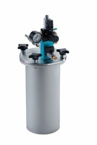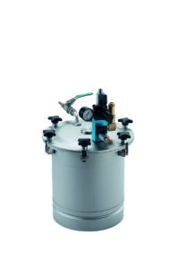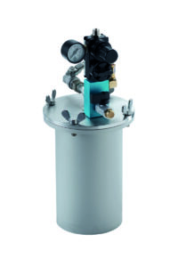 MDG = Materialdruckbehälter: Zur pulsationsfreien Förderung flüssiger Materialien wie Farben, Lacke, Öle, Trennmittel und Harze. Kein Entweichen von Dämpfen oder Gasen an die Umgebung. Sichere Lagerung von Flüssigkeiten.