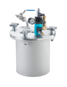 MDG = Materialdruckbehälter: Zur pulsationsfreien Förderung flüssiger Materialien wie Farben, Lacke, Öle, Trennmittel und Harze. Kein Entweichen von Dämpfen oder Gasen an die Umgebung. Sichere Lagerung von Flüssigkeiten.
