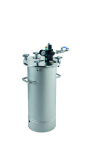 MDG = Materialdruckbehälter: Zur pulsationsfreien Förderung flüssiger Materialien wie Farben, Lacke, Öle, Trennmittel und Harze. Kein Entweichen von Dämpfen oder Gasen an die Umgebung. Sichere Lagerung von Flüssigkeiten.