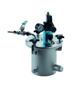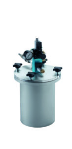 MDG = Materialdruckbehälter: Zur pulsationsfreien Förderung flüssiger Materialien wie Farben, Lacke, Öle, Trennmittel und Harze. Kein Entweichen von Dämpfen oder Gasen an die Umgebung. Sichere Lagerung von Flüssigkeiten.