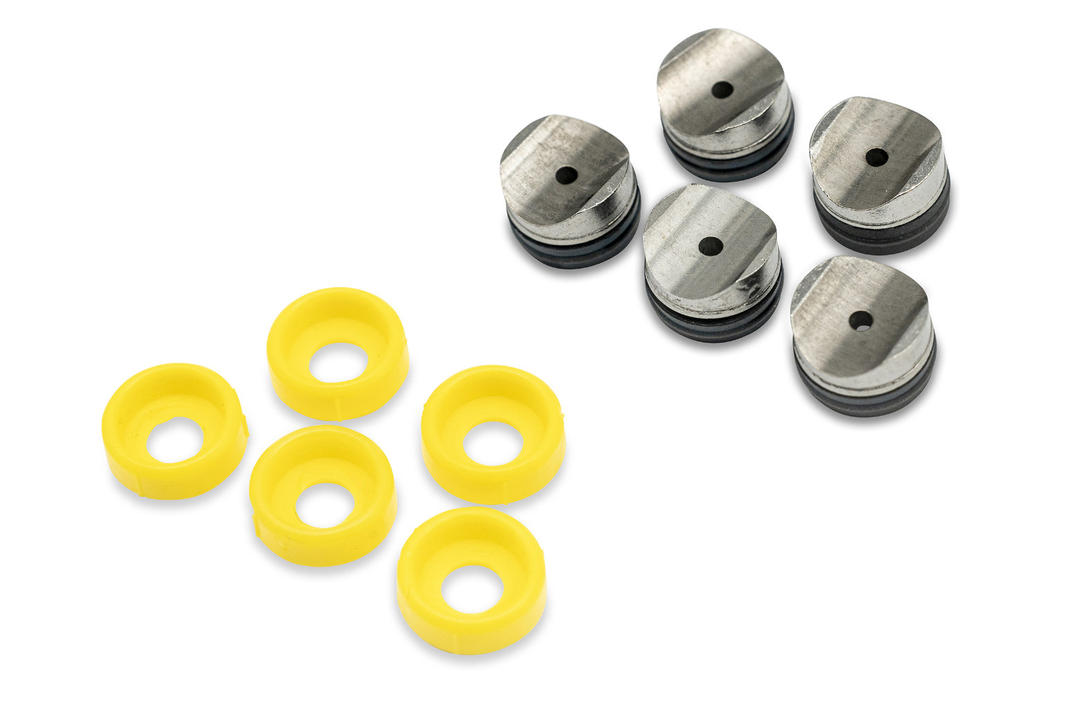 Eingebaut in gehärtete Edelstahlträger bieten MASPRA Düsen für das Airless Spritzverfahren die beste Lösung.